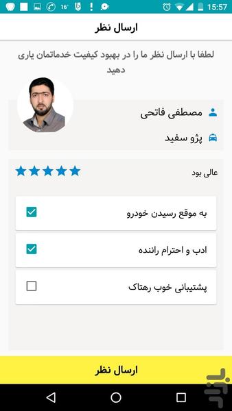 - امتیازدهی به راننده و مسافر در انتهای سفر