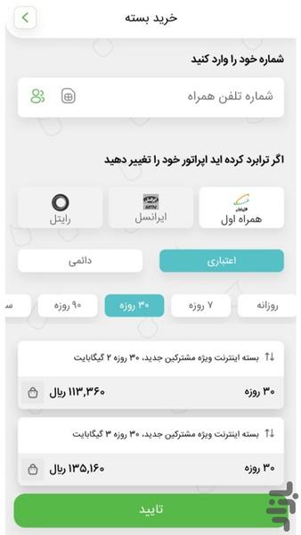• خرید بسته های اینترنتی تمام اپراتورها