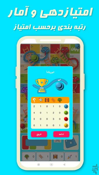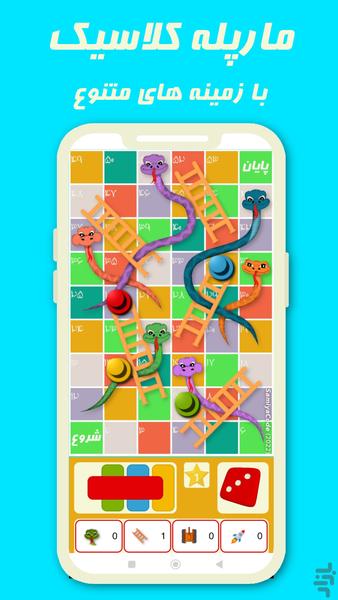 In this game, you can play with one to four people or versus computer.The game has two modes, classic and plus. In the classic mode, you get your bead through snakes and ladders to the end house. In the plus mode, in addition to snakes and ladders, some rockets and tanks are added, which can change the game conditions quickly.