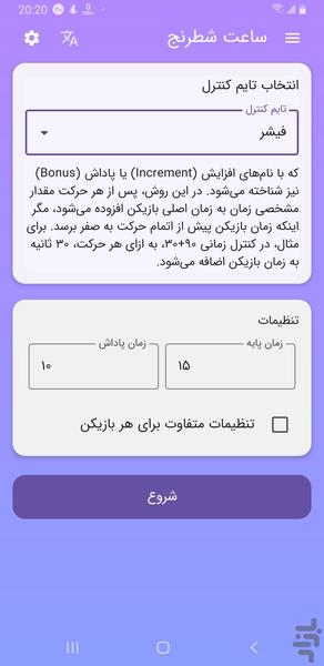 از این تایمر می توانید برای هر بازی و مسابقه نوبتی دیگر هم استفاده کنید. هم چنین برنامه دو زبانه بوده و شما به فراخور حال و سلیقه تان می توانید زبان را انتخاب کنید.