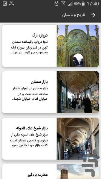 این راهنمای سفر شامل اطلاعات کاربردی برای سفر به سمنان، راهنمای اقامت ، راهنمای رستوران ها و کافه ها، جاذبه های گردشگری و چندین عنوان کاربردی دیگر است که به خوبی می تواند گزینه های مناسبی و متنوعی برای سفر به سمنان در اختیار شما بگذارد. با این برنامه به تمام اطلاعاتی که در طول سفر به سمنان احتیاج دارید دسترسی خواهید داشت.