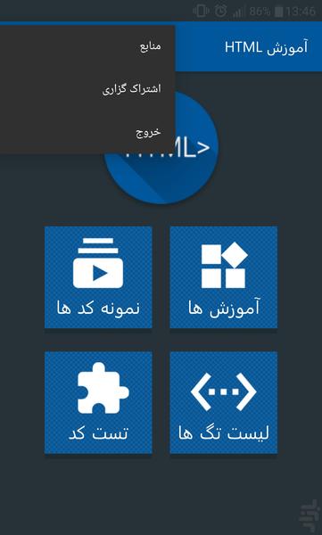 اپلیکیشن آموزش HTML یک اپلیکیشن بسیار عالی برای یاد گیری زبان برنامه نویسی طراحی وب می باشد .