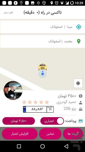 امکانات تماس کاربر با راننده بعد از تایید سفر