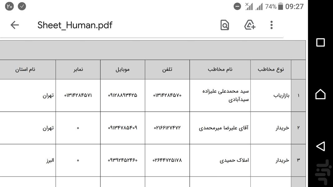 - این برنامه قابلیت اتصال مستقیم به دفتر تلفن اندروید را دارد و شما می توانید کلیه اطلاعات مخاطبین اندروید را مشاهده کرده و سپس براساس انتخاب خودتان قادر خواهید بود مخاطبین را به این نرم افزار انتقال دهید و حتی از آن خروجی pdf یا text و ... تهیه نمایید