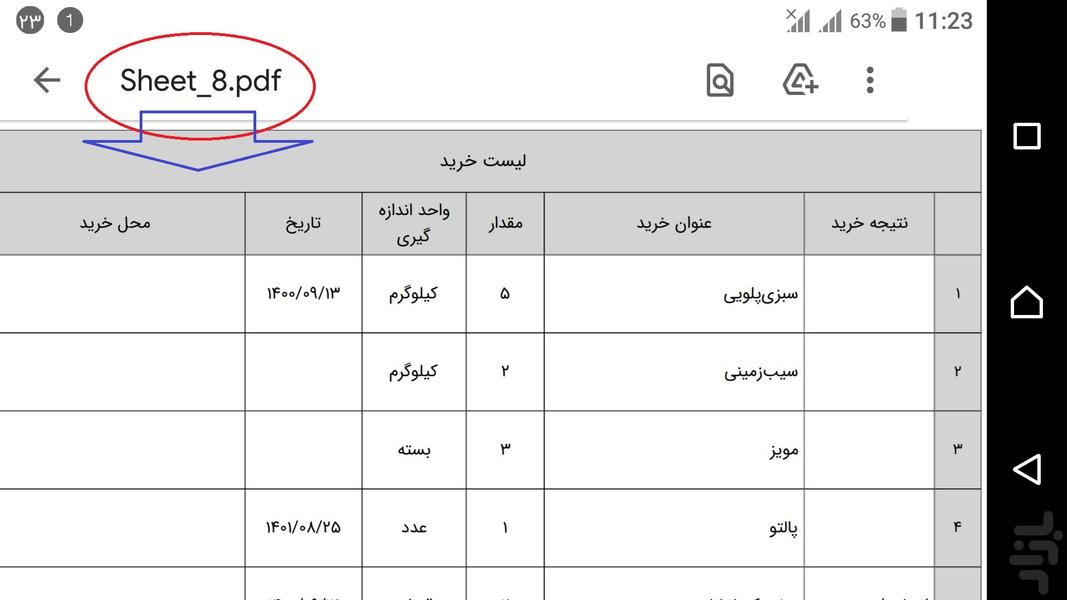 - در این برنامه کليه جداول قابليت سورت فقط با يک لمس ساده را دارند