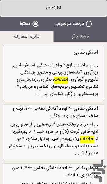 فرهنگنامه و دانشنامه قرآنی "امنیت و اطلاعات در قرآن"، شامل مداخل مرتبط با امنیت و اطلاعات در قرآن از مجموعه فرهنگ قرآن و دائره المعارف قرآن کریم است که در قالب نرم افزار موبایلی در اختیار پژوهشگران، متخصصان و علاقمندان قرآنی قرار گرفته است.