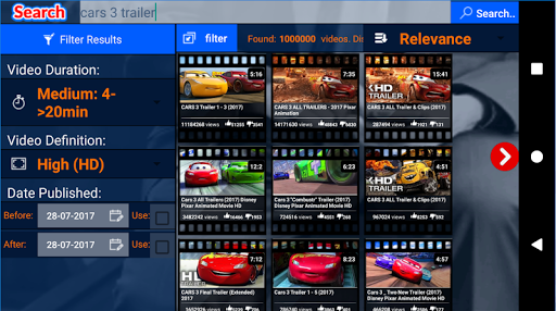 With the Search+Save YouTube application you can make advanced searching of the whole YouTube Video Library using 5 different ways of sorting and 4 different types for filtering the results.