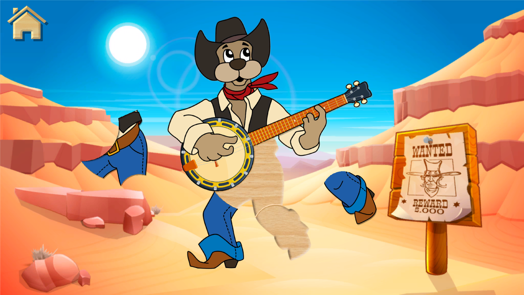 "Music Safari for Kids" is an educational jigsaw puzzle game for toddlers in which your little one will learn about musical instruments, find out their names and listen to cartoon animals playing fun music.