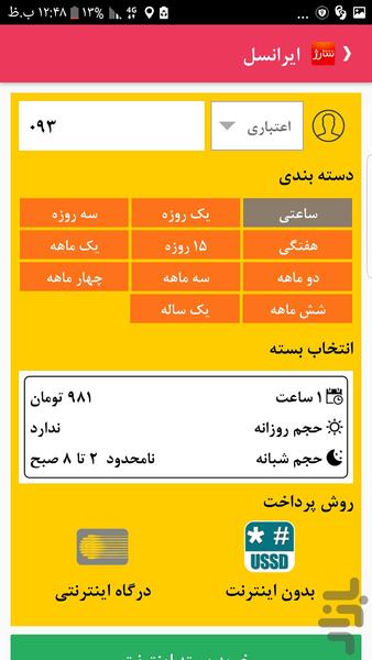 - خرید شارژ سریع و بدون نیاز به اینترنت