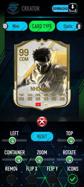 Easily to create FC 25 cards by NHDFUT 25 Card Creator app! Using this app, you can:
