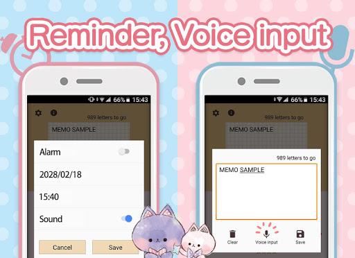 This application is a widget for your home screen and you can enjoy personalizing it. Keep pressing the home screen till an additional menu of widgets appears. Pick out “Notepad Cute Characters” from a list of widgets.