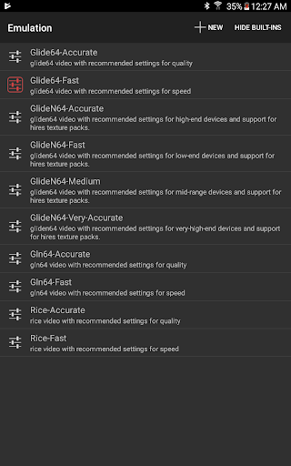 * This includes the new GLideN64 plugin which should work with most games as long as your device is powerful enough. Not all games will work with default GLideN64 settings though, so you may have to play around with creating new profiles.