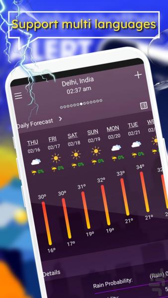 بینی آینده ده روز، همچنین پیش بینی آب و هوا ساعتی است.