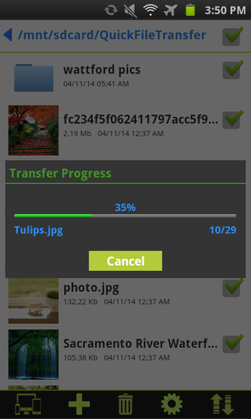 Quick File Transfer is a smart file sharing application. It is used to transfer files and folders between android phones and windows computers on your local network. It is very easy and fast to use. No need to enter IP address and port numbers. Devices are discovered automatically on your local network.