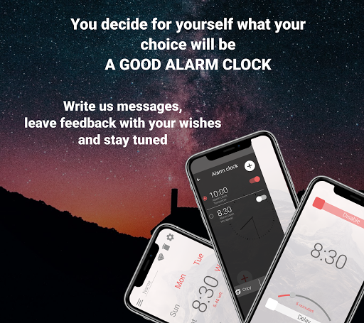 Calm alarm clock has flexible settings and adapts to your wishes for its operation. Simple alarm clock with beautiful background pictures on the shutdown screen will ensure a good mood for the whole day. Alarm clock for free will not bother you with advertising, but will calm you down with beautiful backgrounds for every taste.