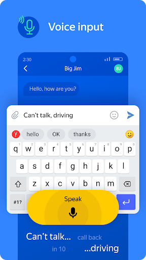 The keyboard uses proprietary machine learning algorithms developed by Yandex in order to make appropriate suggestions as you type. Advanced predictive capabilities even let you receive suggestions for words you haven't typed yet. You can also suggest your own words and let the keyboard adapt to the way you talk, or just forgo the feature altogether.