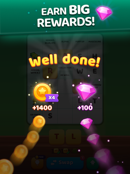 • Solve Crosswords – fill in bite-sized crosswords with super fun clues