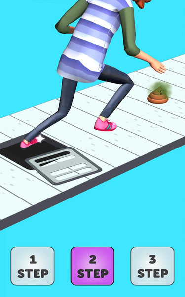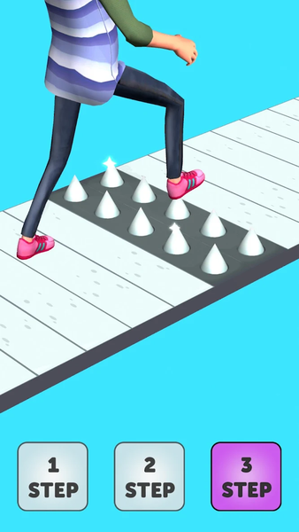 Guide your character with one, two or three steps to avoid stepping on obstacles and reach the exit line.