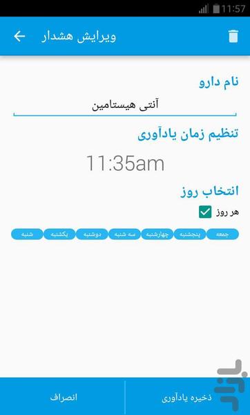 -امکان تنظیم یادآور برای تمامی روزهای هفته