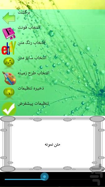 ● با تنظیمات فوق العاده از جمله انتخاب فونت . سایز متن . رنگ متن . تصویر و قاب زمینه