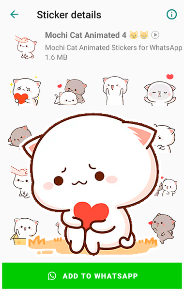 New collection of cute Mochi Cat stickers. Hundreds of new Mochi Cat animated stickers for WhatsApp gives you the ability for more expression and makes communicating with friends and family more fun.