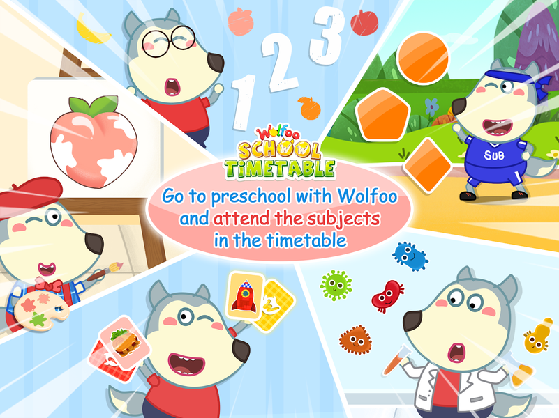 The game has a variety of subjects, along with fun pictures and sounds that will stimulate the interest of children of all ages. Do not hesitate any longer, quickly download Wolfoo Study: School Timetable game to explore his school subjects!