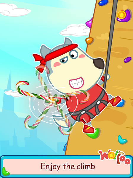 - Come join Wolfoo on the brand new challenge "Artificial rock climbing wall" and help him conquer it.