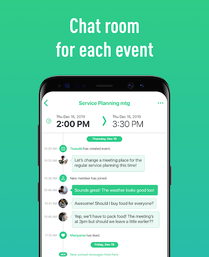 ・Chat and send photos as if you were using a messenger app for each event you create.
