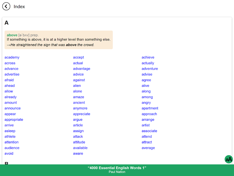 The activities in "4000 Essential English Words" are specially designed to make use of important learning conditions. Firstly, the words are introduced using sentence definitions and an example sentence. The activities that follow in the units encourage learners to recall the meanings and forms of the words. Some activities also make the learners think about the meaning of the words in the context of a sentence—a sentence different from the sentences that occurred in the introduction of the words. Moreover, each unit ends with a story containing the target words. While reading the story, the learners have to recall the meanings of the words and suit them to the context of the story. Such activities help learners develop a better understanding of a common meaning for a given word which fits the different uses.