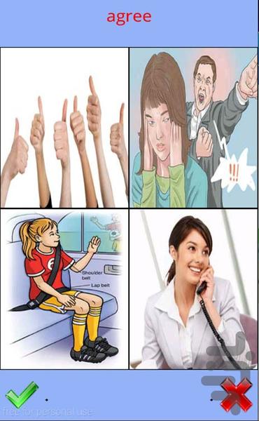 در این برنامه حتی برای معانی انگلیسی و مثالها نیز از صوت انسان با لحجه آمریکایی استفاده شده است